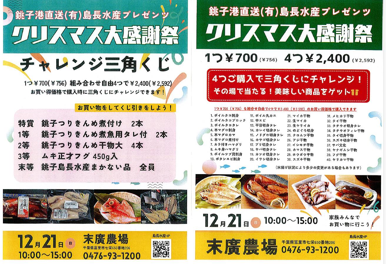 今回は「末廣漁港クリスマス大感謝祭」として、空くじなしの三角くじをご用意いたしました。